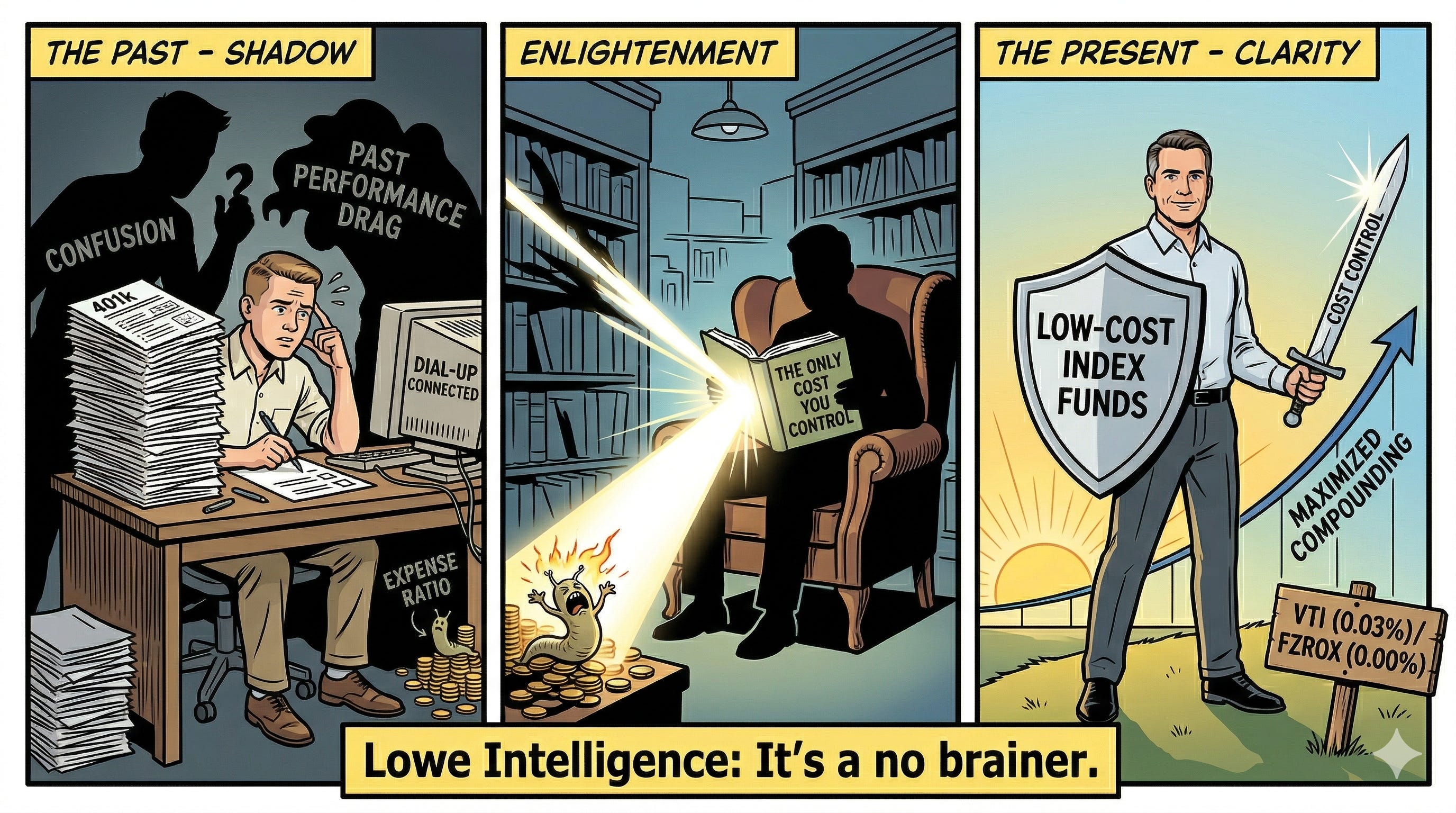 The cost was in the prospectus. But when you are 20, staring at past performance charts with no one to guide you, you are not reading the prospectus. Nobody teaches you to look for it. So you pick the fund with the best name and the biggest past performance returns.
